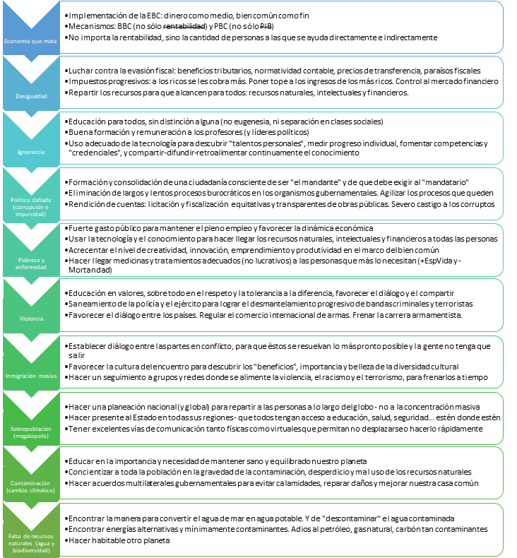 Sin duda, nunca se pueden olvidar los grandísimos problemas que genera la ausencia de Dios en la vida de millones de personas. A través de soluciones “materiales” no se puede solucionar esto. Sin embargo, sí se pueden solucionar otras cosas que no permiten el desarrollo de la humanidad. Aquí unos primeros esbozos de soluciones: